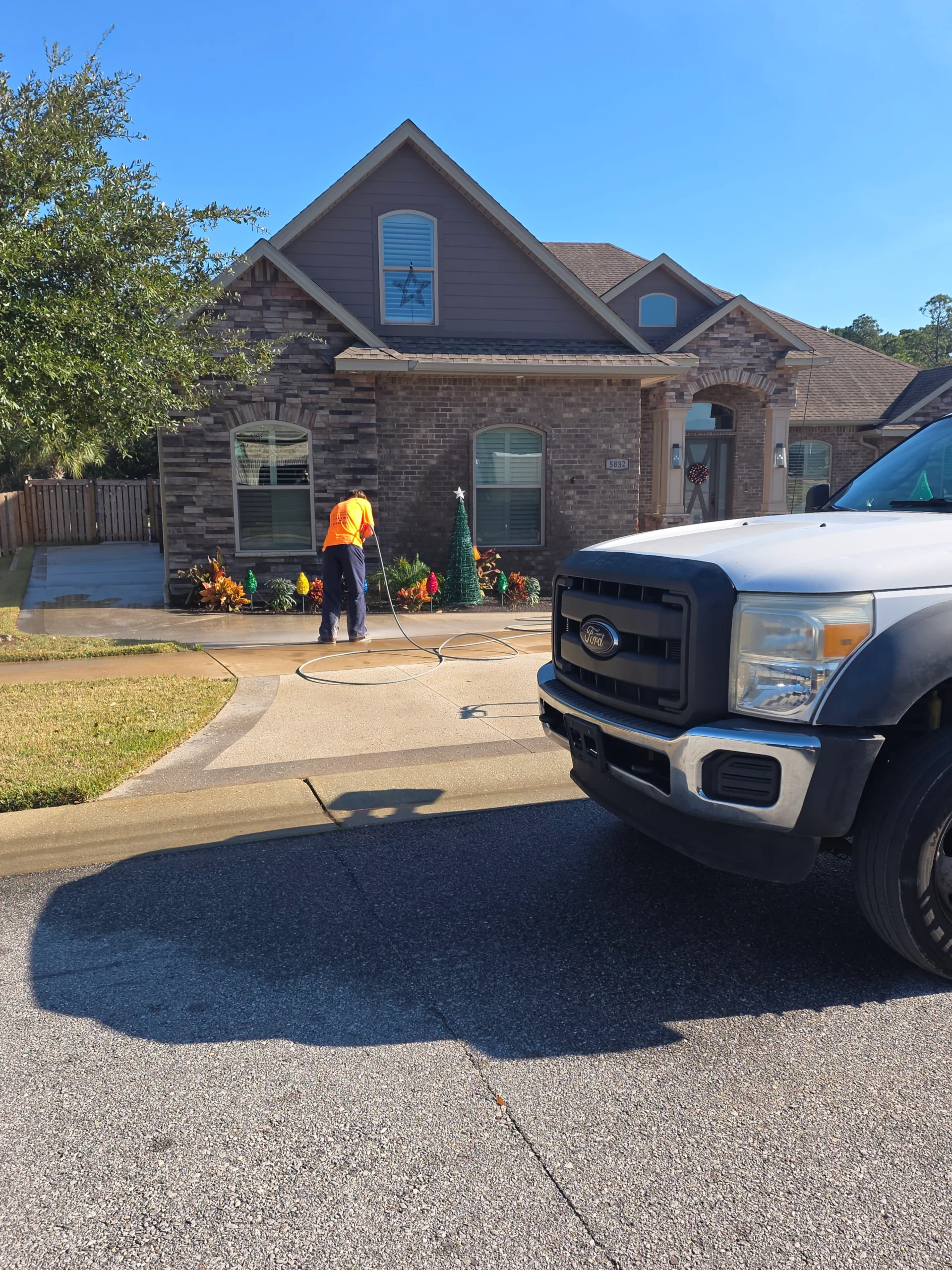 We then staged equipment to minimize hose traffic and discussed expectations with the homeowner prior to starting. This clear communication ensured our driveway surface cleaning and maintenance services matched the client’s goals for appearance, safety, and timing in Pensacola FL 32534.